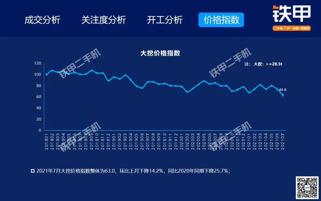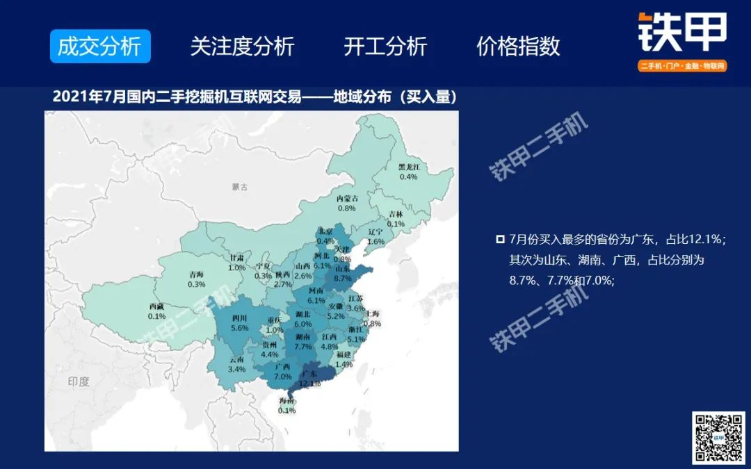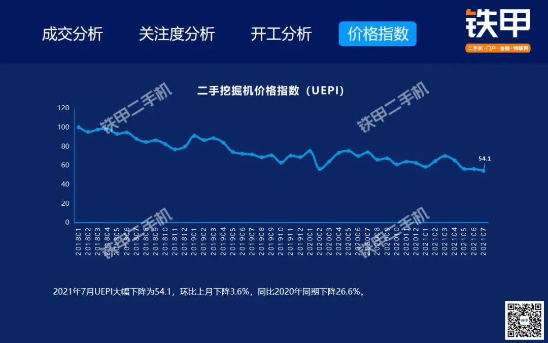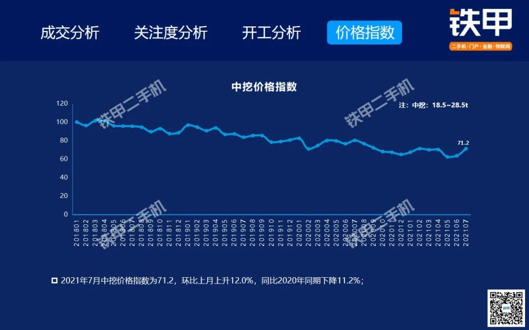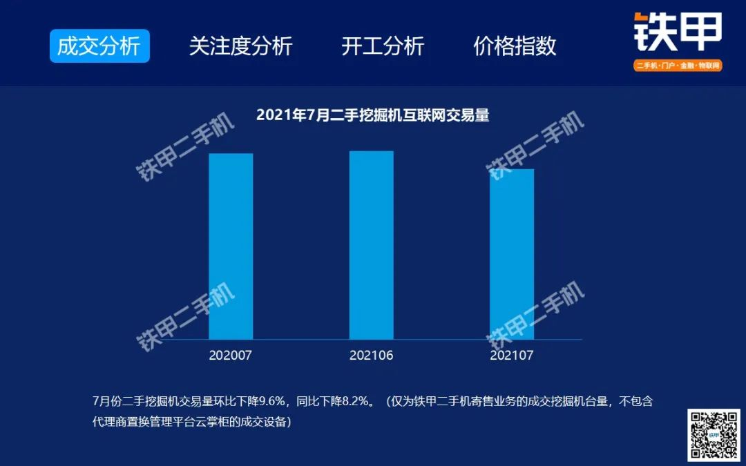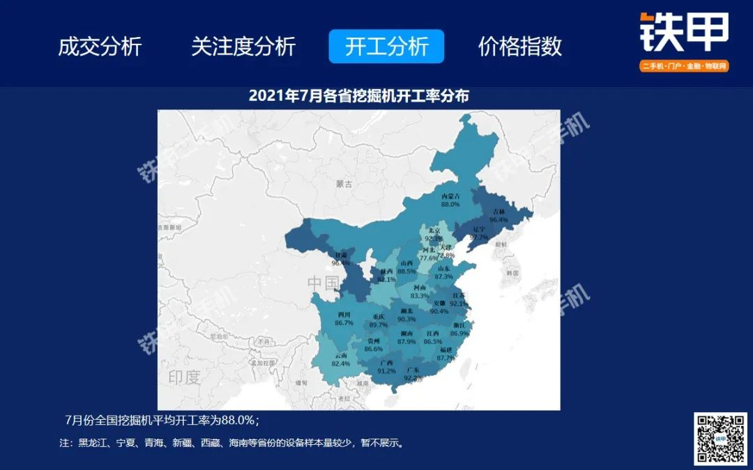 2021年7月全國挖機平均開工率88%,鐵甲二手挖掘機互聯(lián)網(wǎng)交易報告新鮮出爐!