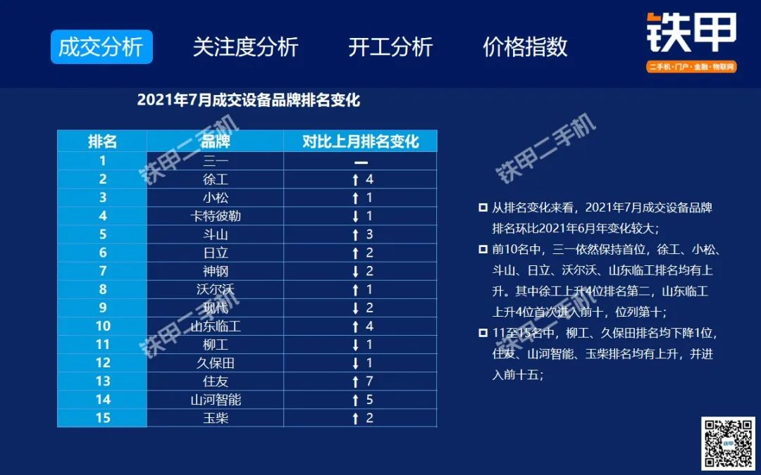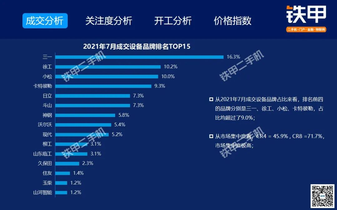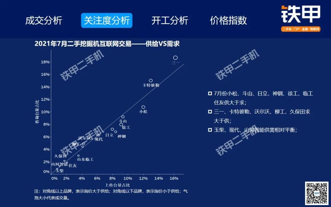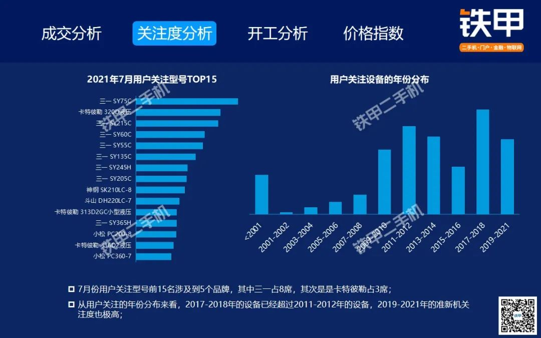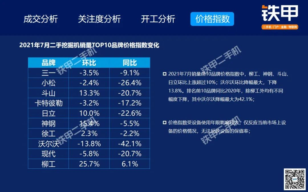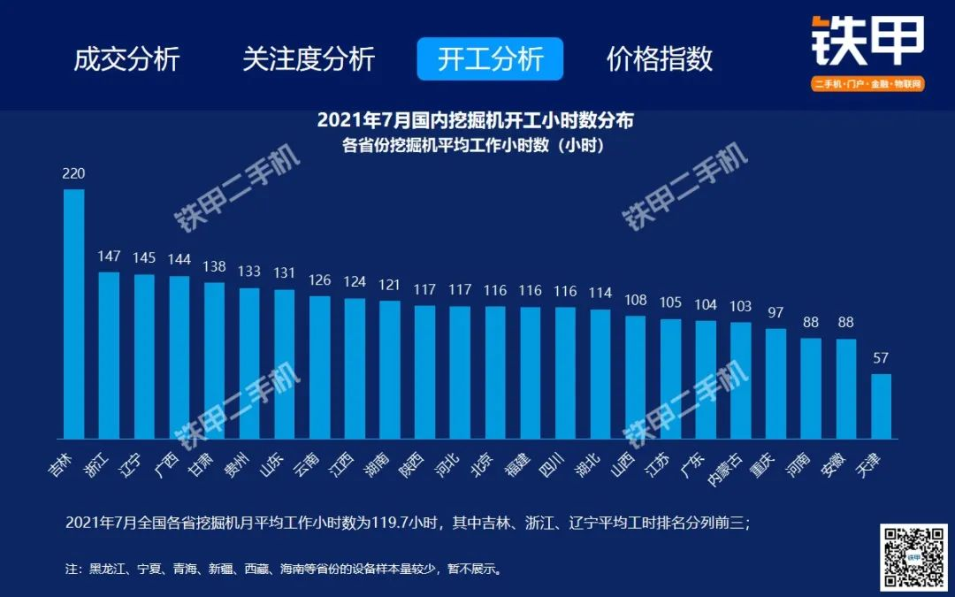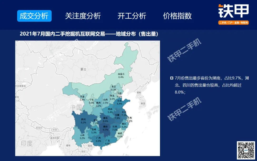 2021年7月全國挖機平均開工率88%,鐵甲二手挖掘機互聯(lián)網(wǎng)交易報告新鮮出爐!